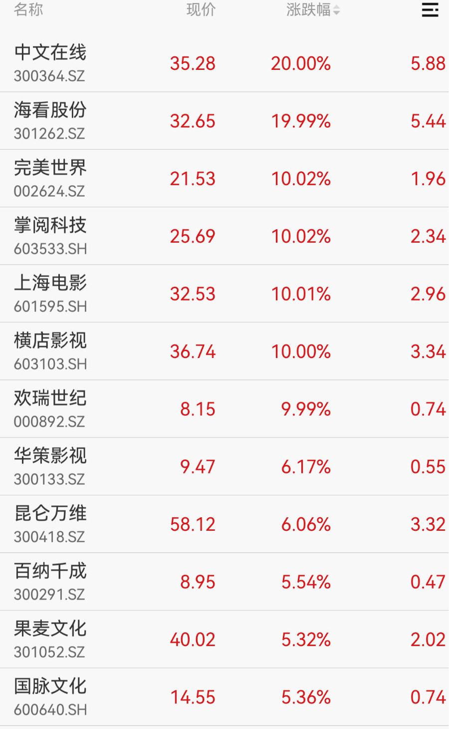 2月9日早盘,A股AI应用端板块迎来大幅高开,传媒、短剧方向成为领涨先锋,有着"新易中天"之称的易点天下、中文在线、天龙集团等个股集体大涨。截至9时37分,中文在线、海看股份、掌阅科技、完美世界等涨停,易点天下、天龙集团等涨幅靠前。
