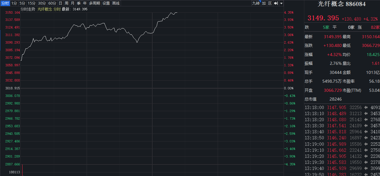 光纤价格创七年新高,光纤概念持续反弹丨盘中线索