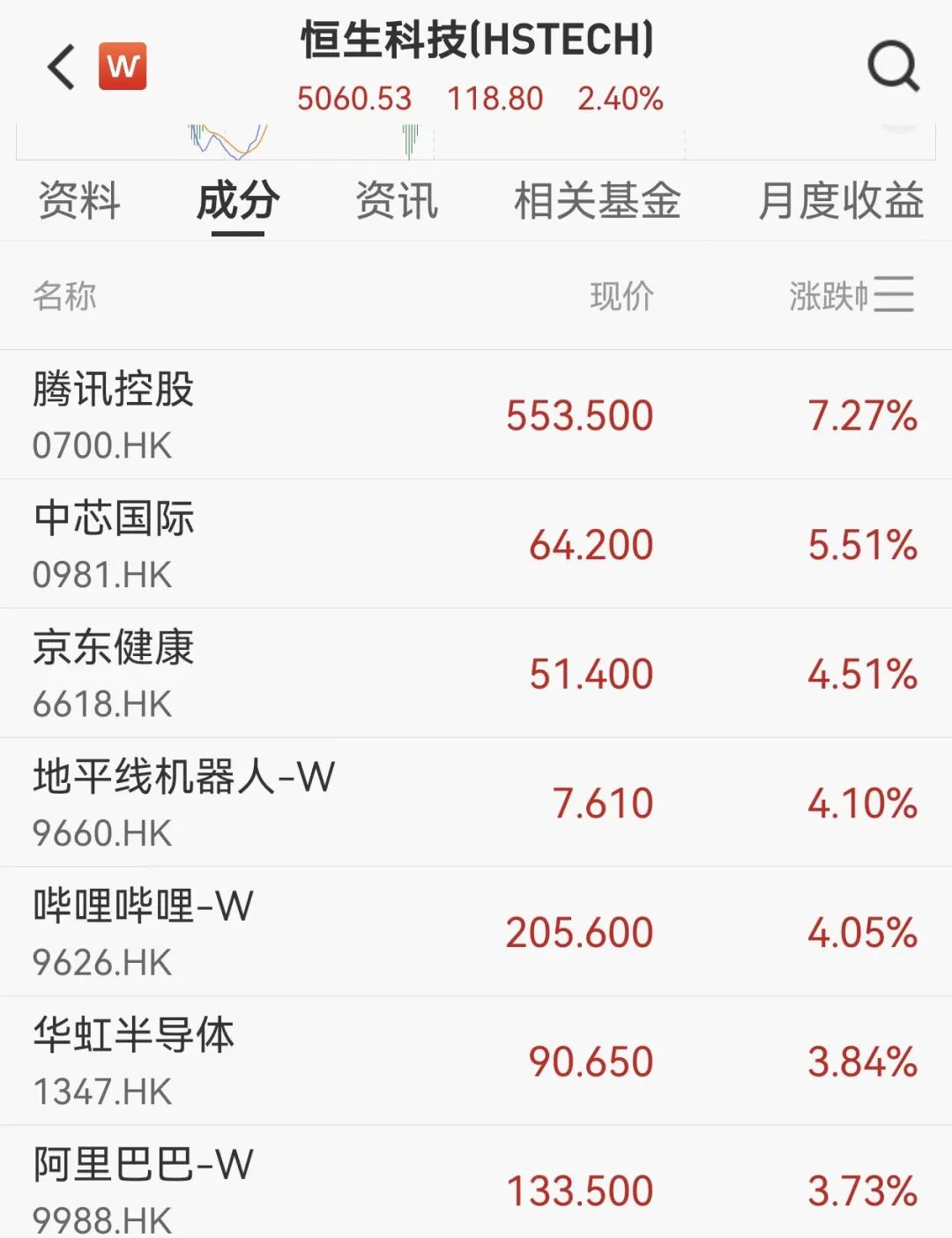 港股收盘走高,恒生指数涨幅2.17%;恒生科技指数涨幅2.4%。科网股集体反弹,叠加OpenClaw持续火爆。宁德时代大涨逾9%,腾讯控股涨逾7%,中芯国际涨逾5%,京东健康、阿里巴巴、小鹏汽车等同步上涨。