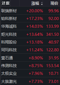截至收盘,存储芯片概念涨超3%,联瑞新材“20cm”涨停,铂科新材、华海诚科、炬光科技、科翔股份等跟涨。