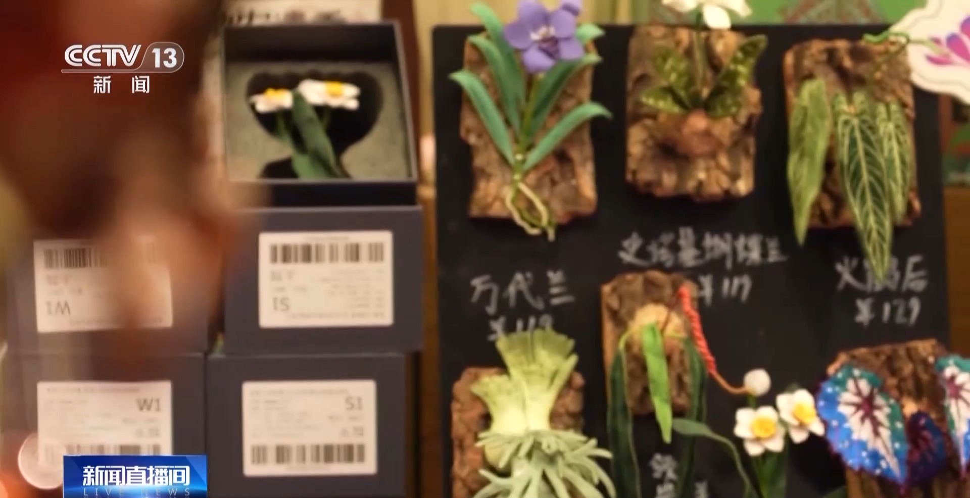 通草花手工艺人 王蕴玉:我们根据最近的季节推出了一些像冰箱贴、胸针、发簪,还有我们的耳饰等一些作品,希望可以更贴近年轻人的生活,让年轻人喜欢。