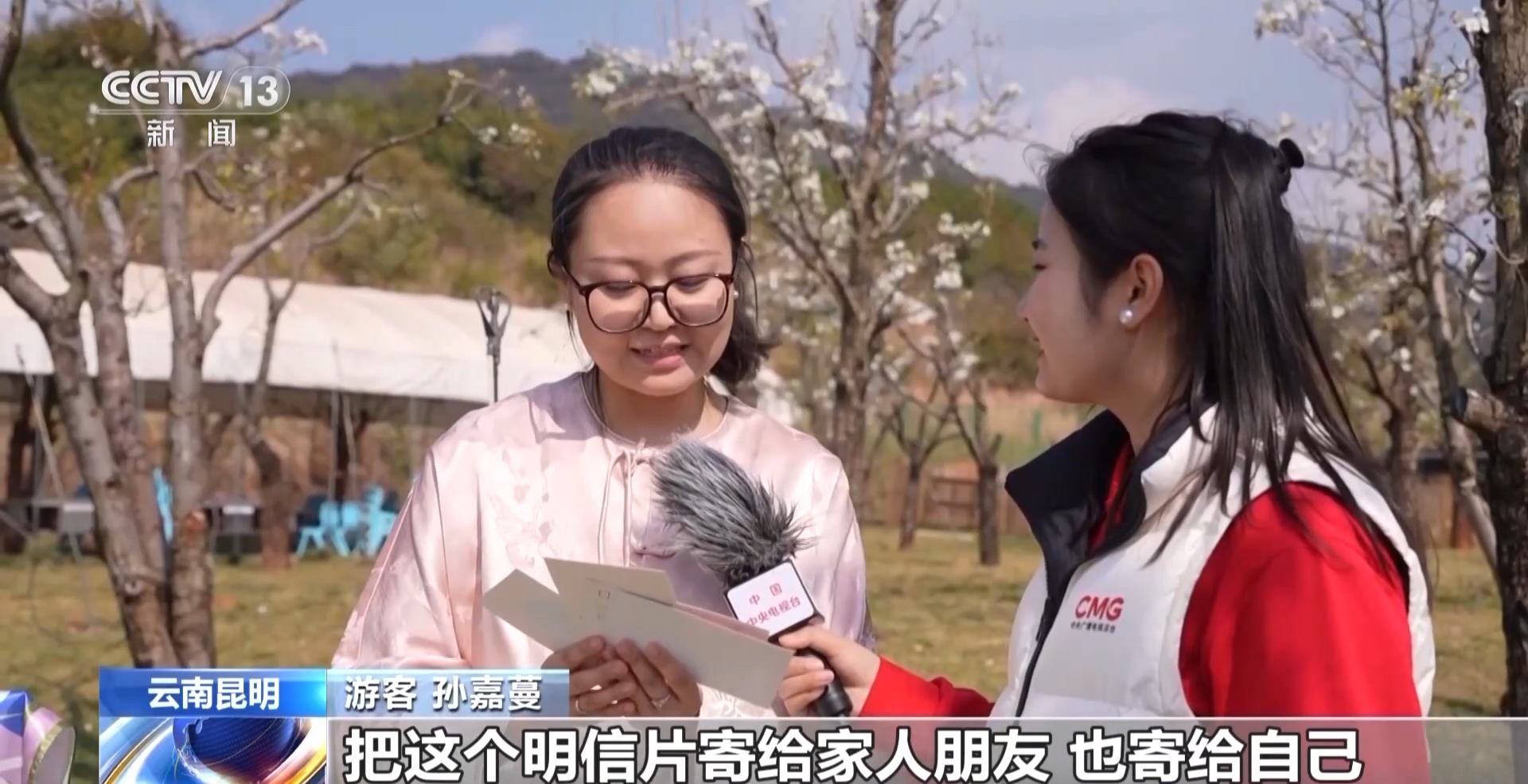 游客 孙嘉蔓:把这个明信片寄给家人朋友。也寄给自己。一年之计在于春,希望可以好好工作,然后像这满园春色一样,有一个很好的收获。