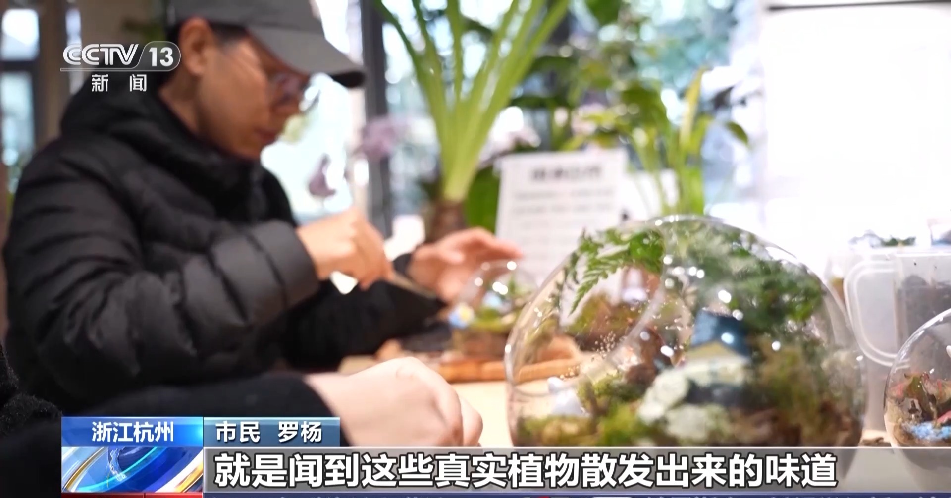 市民 罗杨:在做这个的过程中,闻到这些真实植物散发出的味道就非常治愈,平时工作上的压力也会得到释放。
