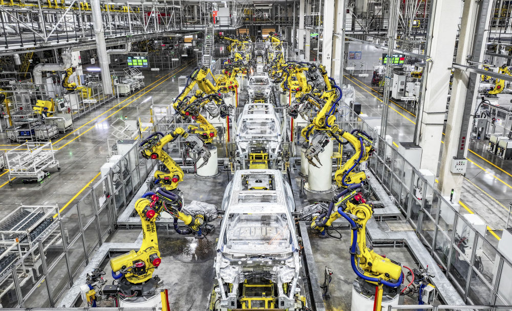 这是2025年9月19日在位于重庆市两江新区的赛力斯汽车超级工厂拍摄的自动化生产作业现场。新华社记者 王全超 摄