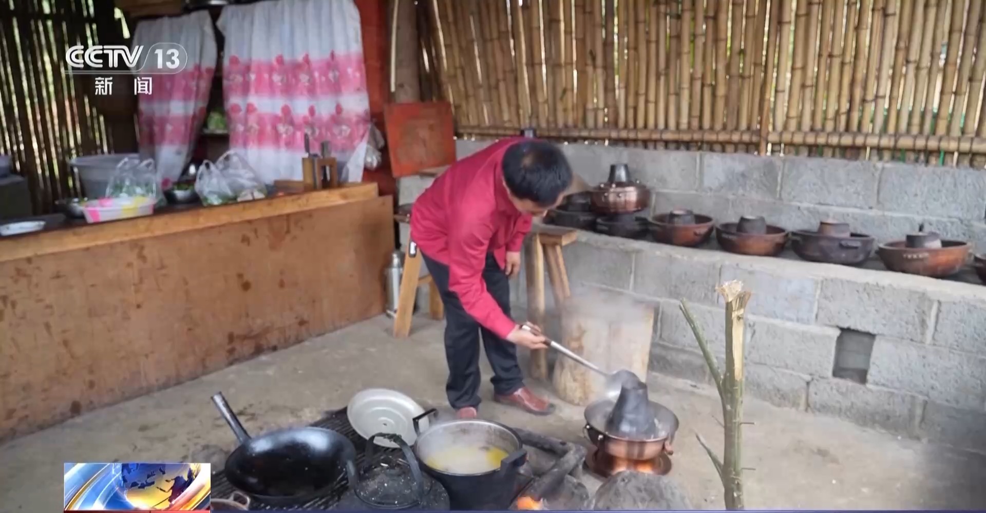 窜龙村村民 段生济:我们放荨麻根,要等水烧开。现在水沸腾了,我们把这个荨麻根放下去,今天我们的主菜就是这个。