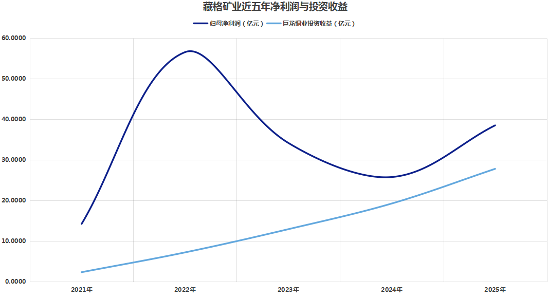 藏格矿业披露的2026年产量计划为,巨龙铜业预计铜精矿产量为30-31万吨,公司享有权益产量约9.23-9.54万吨。如果按照31万吨的产量指引上限粗略估算,2026年巨龙铜业所贡献的投资收益有望提升至45亿元。