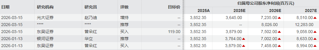 上周末,各家机构给出的2026年净利润预期值多数超过70亿元,少数机构更是为其给出了119元的目标价,相当于在现价基础上再升50%左右。