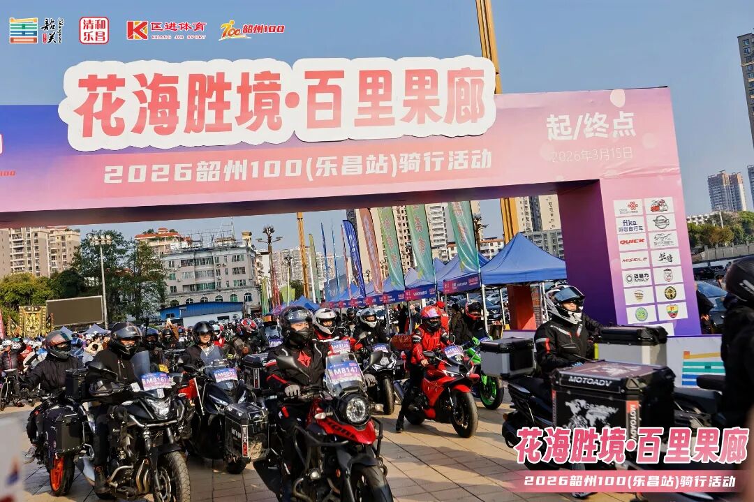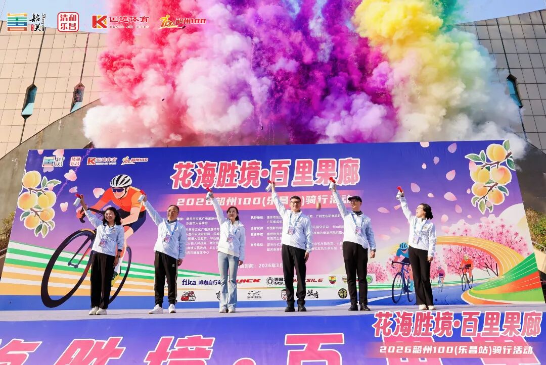 春拂粤北,花缀乐昌。3月15日,花海胜境•百里果廊2026韶州100(乐昌站)骑行活动在乐昌体育馆鸣枪出发。