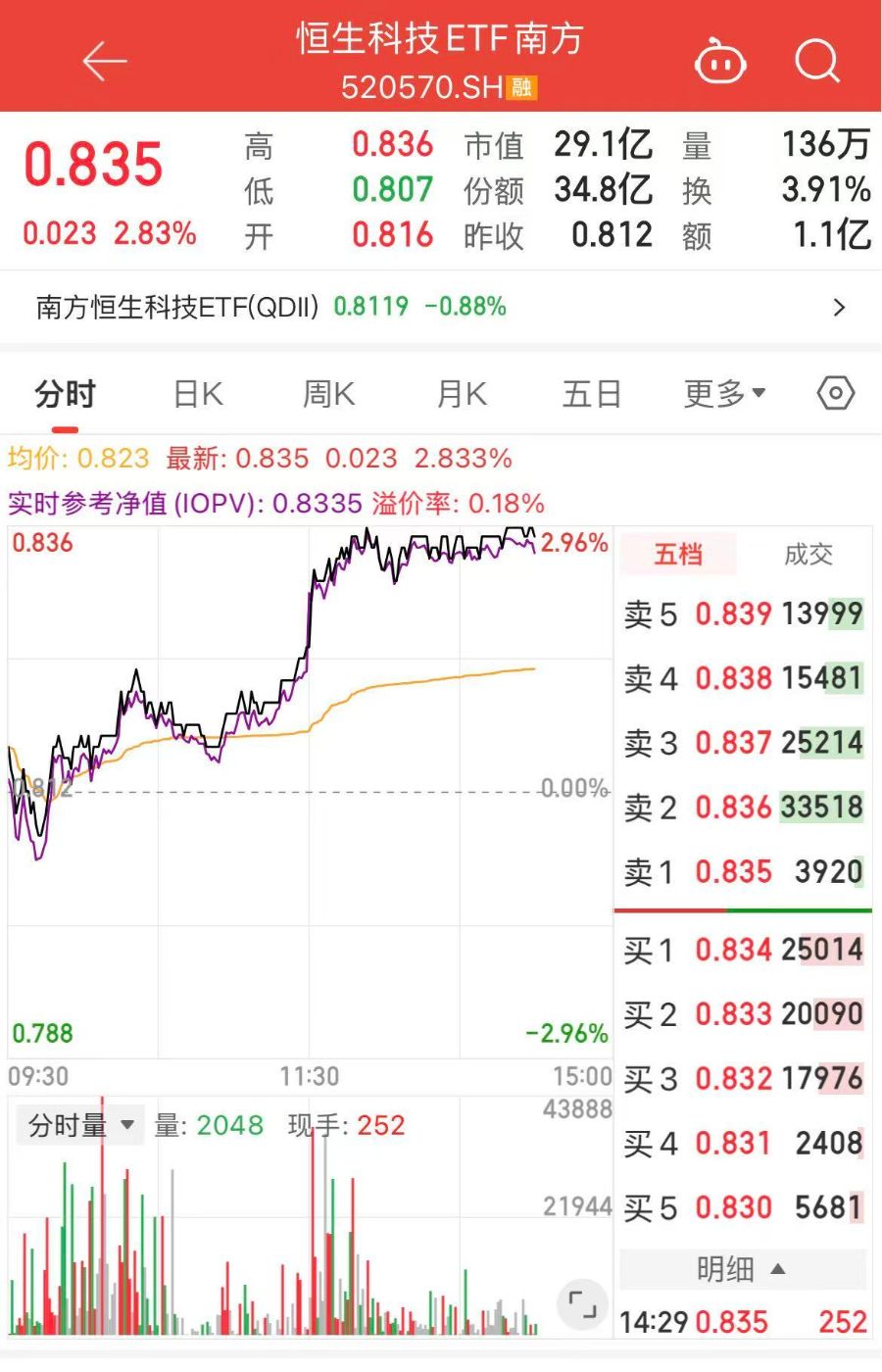 暴力拉升!恒生科技ETF南方(520570)上涨2.83%,港股科技展现高弹性价值