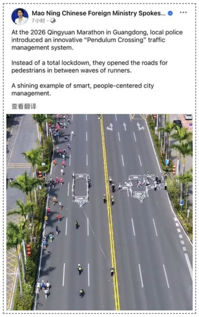外交部发言人毛宁转发点赞清远马拉松“钟摆式过马路”:以人为本的智慧城市管理的典范