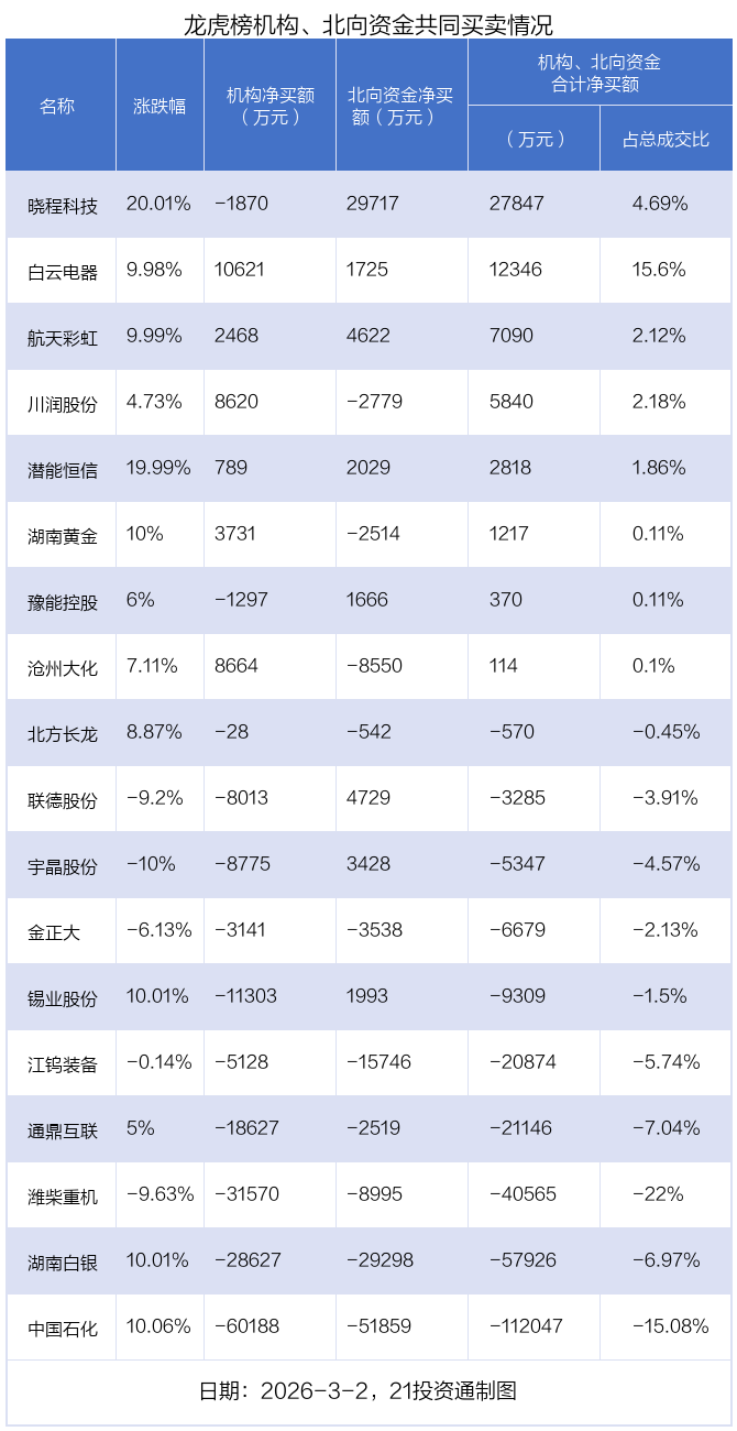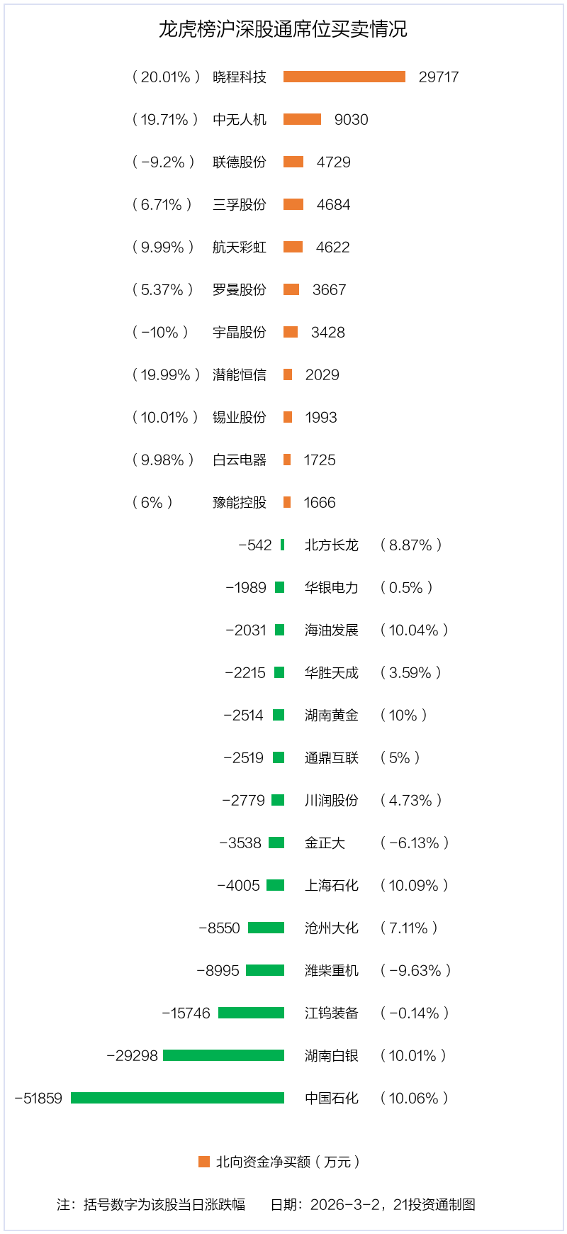 2.37亿资金抢筹晓程科技,机构卖出中国石化(名单)丨龙虎榜