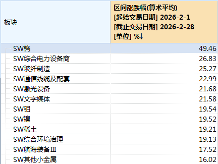 另据wind统计,今年2月,包括章源钨业、中钨高新等在内的申万钨板块涨幅达到49.46%,位居同期A股所有细分行业首位。