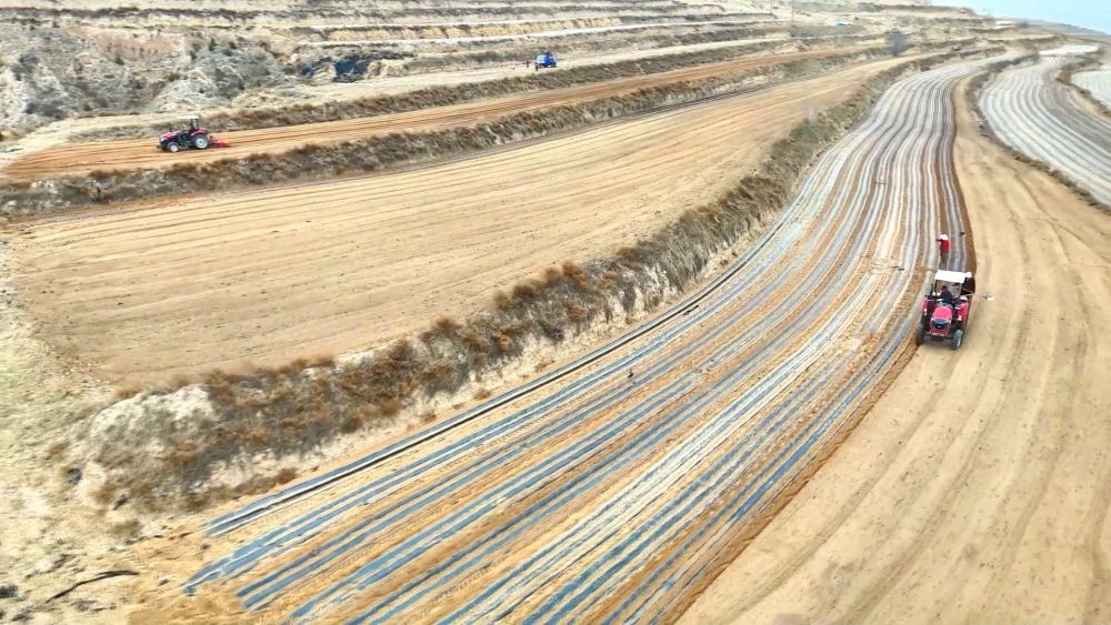 ■甘肃定西:顶凌覆膜启春耕 旱塬梯田绘丰景