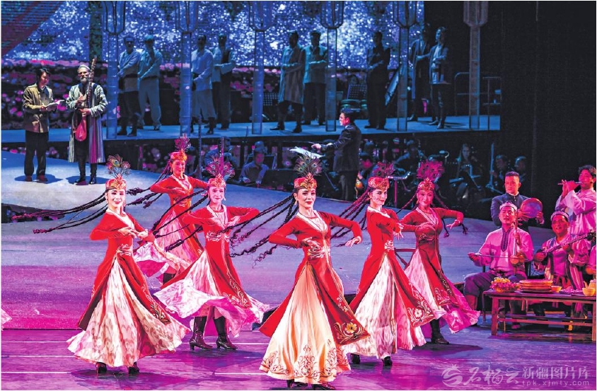 3月19日,演员在第四届新疆文化艺术节开幕式上表演歌剧《木卡姆恋歌——万桐书》。 天山网-新疆日报记者汤永摄