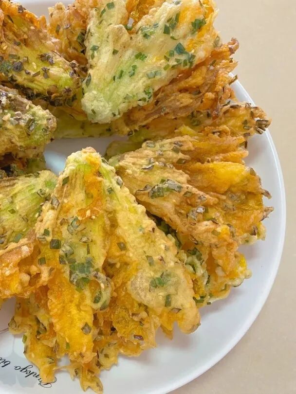 南瓜花 是抚州乡野常 吃的一道美味。花朵洗净、沥水,裹上面粉糊糊,入锅油炸而成的 油炸南瓜花 , 花 瓣 轻薄、面粉糊香脆,两者相得益彰。