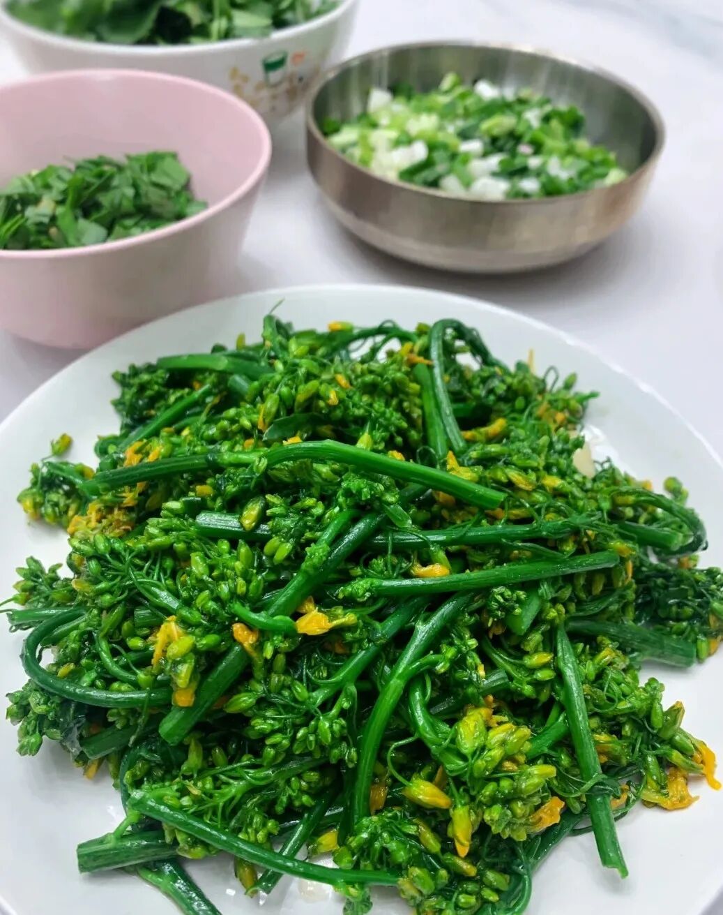 油菜花 是抚州赏花之旅中的大明星。取尚未完全开放的花苞和最嫩的茎尖,此时口感最佳。油菜花炒熟后依然保持翠绿,入口脆嫩,带有油菜特有的清香。