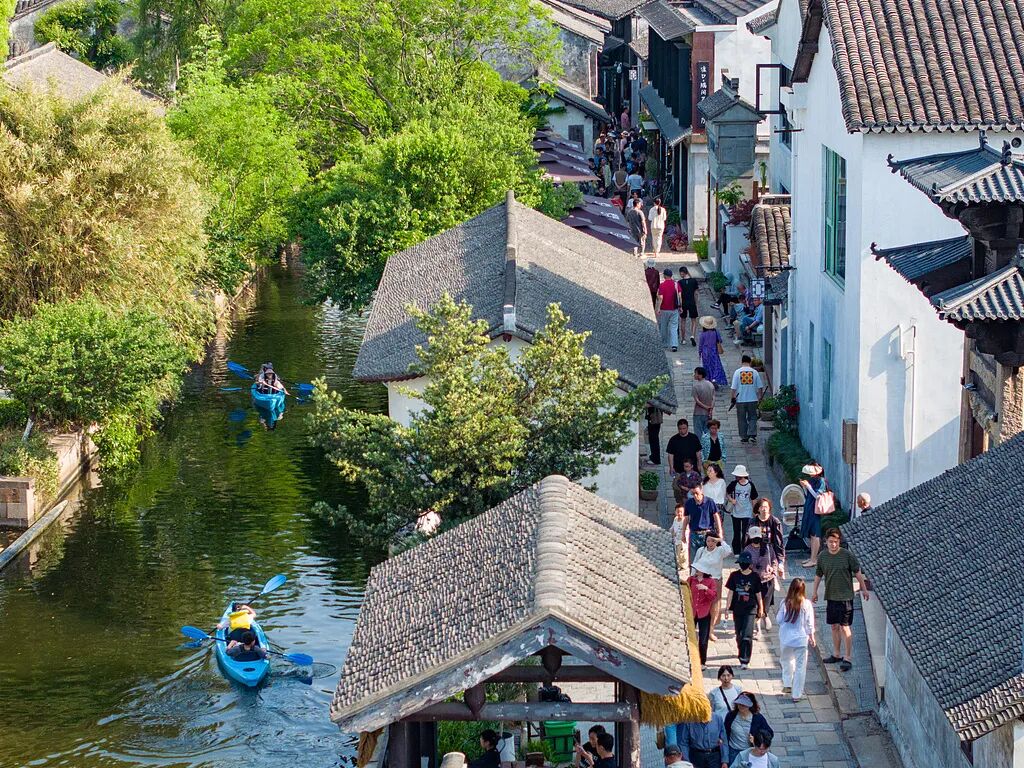 千灯古镇 的石板街长一千五百米,是江南古镇中最长且保存最完整的石板街之一; 歇马桥村 沿河呈带状布局,水陆并行、河街相邻,民居临水而建。