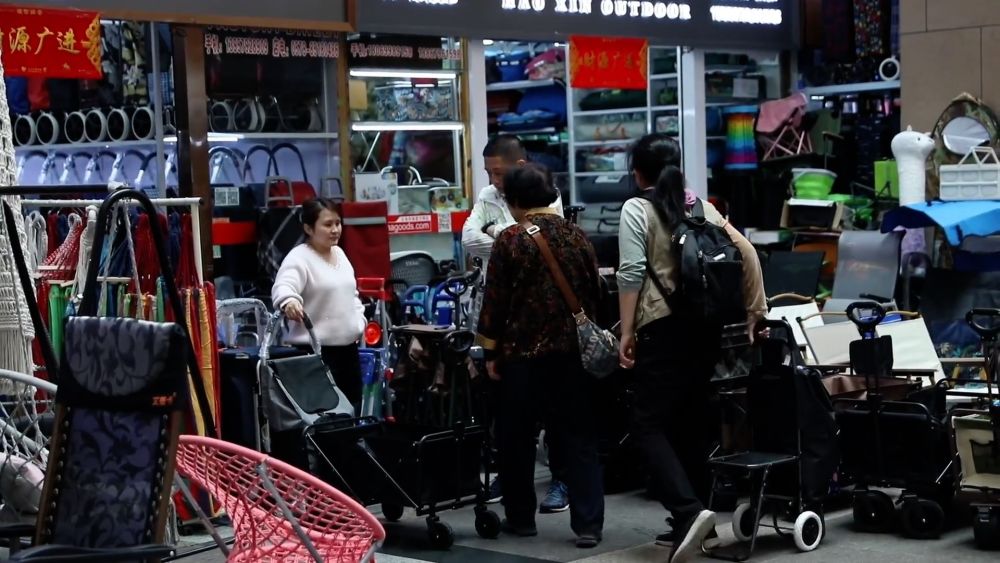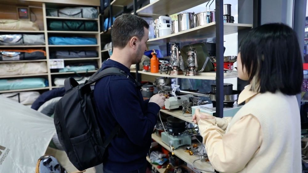 在义乌国际商贸城,帐篷、桌椅、睡袋等户外用品琳琅满目,吸引众多采购商前来选购,户外用品市场迎来春日热潮。