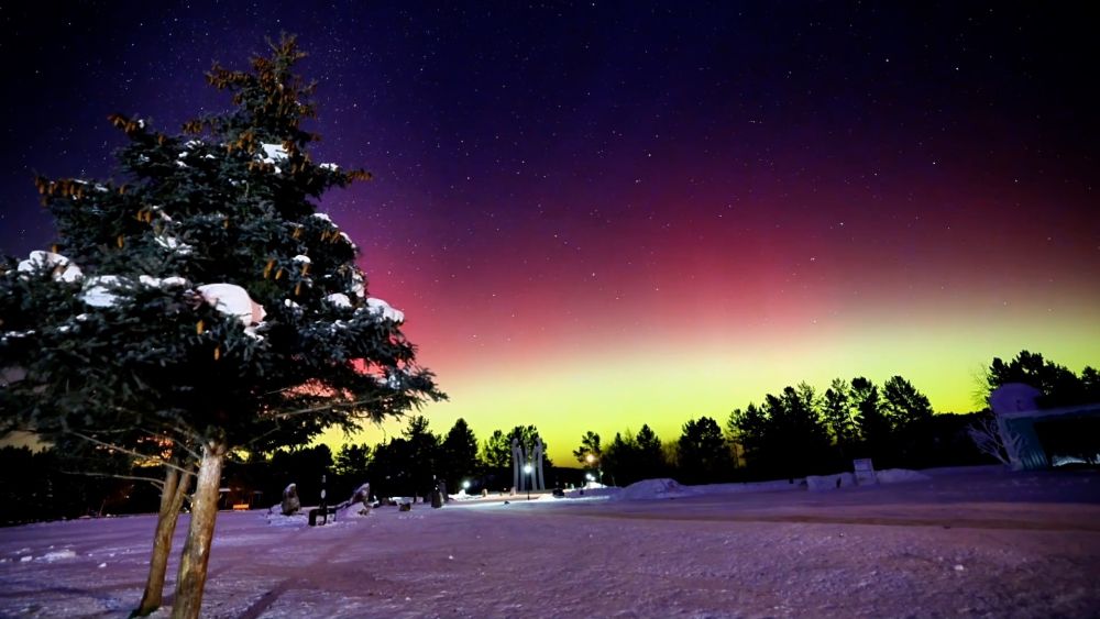 近日,在素有“极光之城”之称的黑龙江省大兴安岭地区漠河市,出现了红绿极光美景,吸引大批游客踏雪追光。