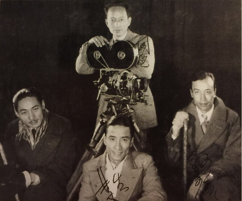 《渔光曲》宣传照(前排左起:史东山、蔡楚生、孙瑜;后排立者:周克)
