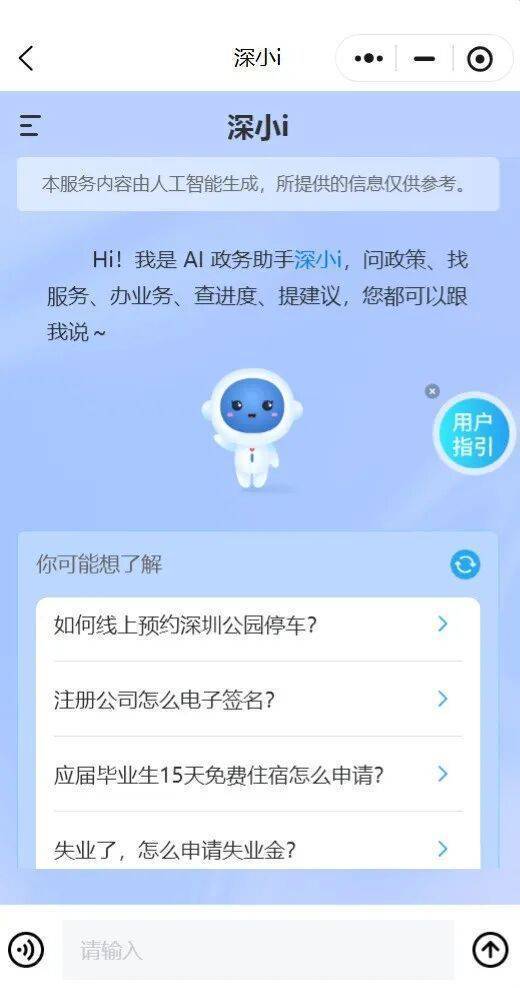 深圳近期印发的《深圳市深入推进“人工智能+政务服务”工作方案》明确提出,到2027年实现政务服务全周期重点场景智能化服务覆盖率100%。作为全市统一政务智能应用体系的统揽,“深小i”已累计提供智能问答服务超500万次,应答率超97%,一次解答精准率超94%。