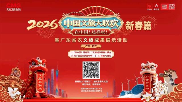 而就在春节前,阳江开展了一系列精准谋划。借助央视《2026中国文旅大联欢》新春篇这一国家级融媒体平台,“海丝名城”阳江闪耀全国乃至世界。活动于2月7日至8日举行,吸引全国29座城市约800位嘉宾等代表汇聚阳江。平台还在8日推出了长达7.5小时的阳江专场直播,由文体名人化身“推介官”,向全国展示了“山海+非遗+美食+康养”的独特文旅魅力,全网直播实时观看量累计约1453.4万,直接触达人次超过7亿人次。整个春节假期,165场涵盖非遗、民俗、文博、体育的文体活动,更是将节日氛围拉满。