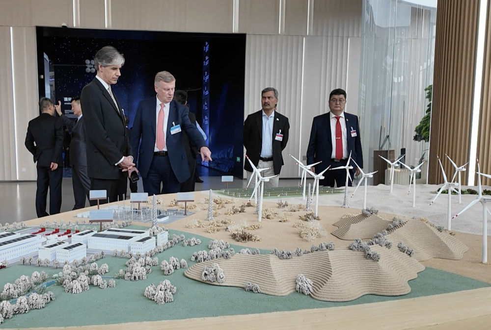 在广东省中山市明阳智慧能源集团股份公司,外国在港领团和商界参访团成员在了解能源解决方案(4月9日摄)。新华社发(李俞辉摄)