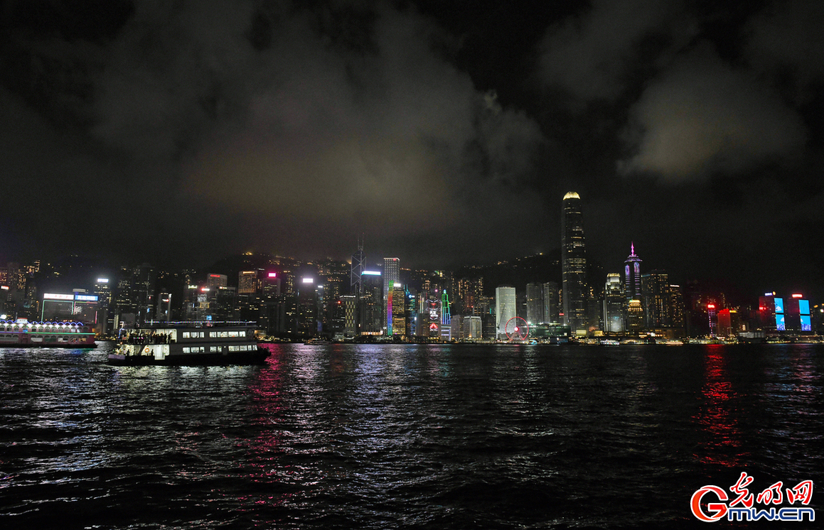 4月12日,香港维多利亚港两岸灯光璀璨。