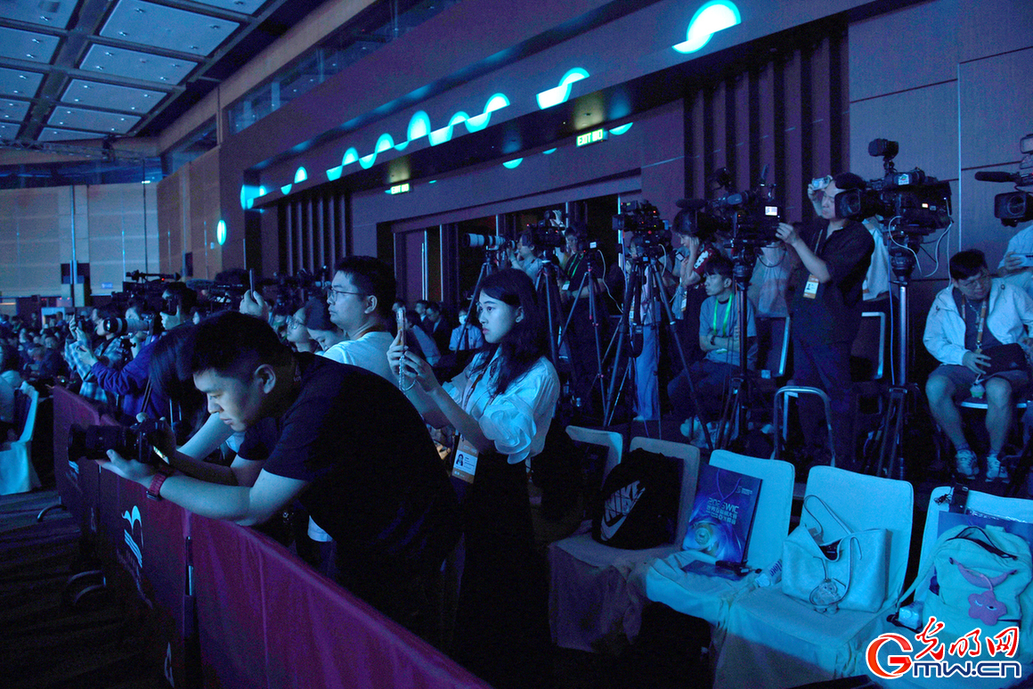 4月13日,开幕式现场,众多媒体记者在拍摄报道。