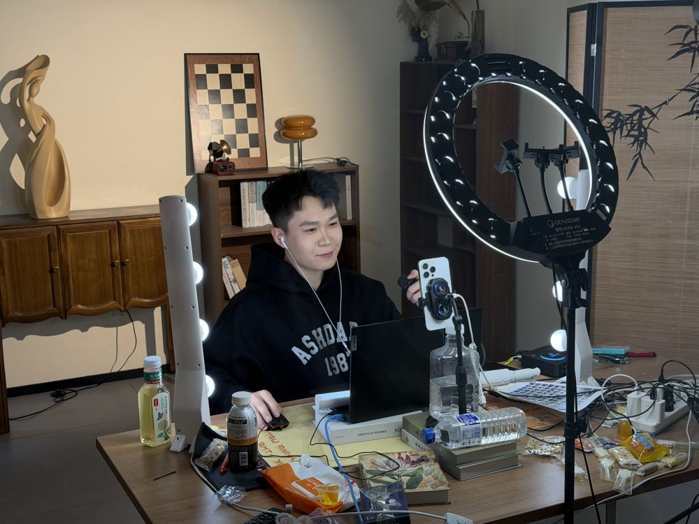 一名正在直播的东北主播。新华社记者唐铭泽 摄