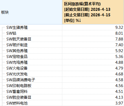 根据Wind统计,本周前三个交易日,纳入申万生猪养猪板块的12家样本公司平均涨幅达到9.32%,位列当期申万所有细分行业涨幅榜的首位。