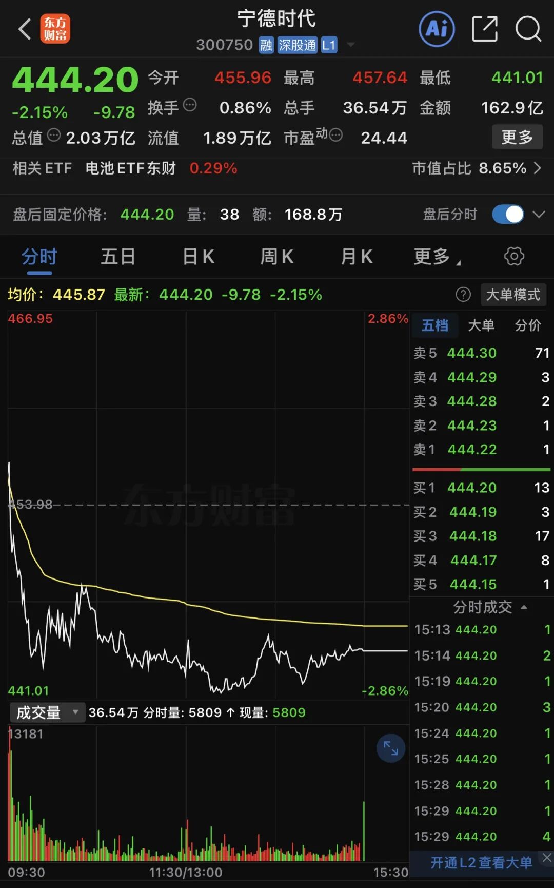 根据宁德时代最新收盘价,本次询价转让的股份市值超250亿元。
