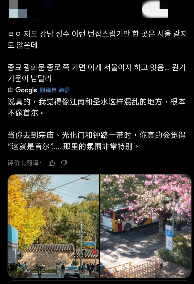 韩国网友发布的帖文,右图为广州的大学生罗文睿拍摄的广州街景照片。