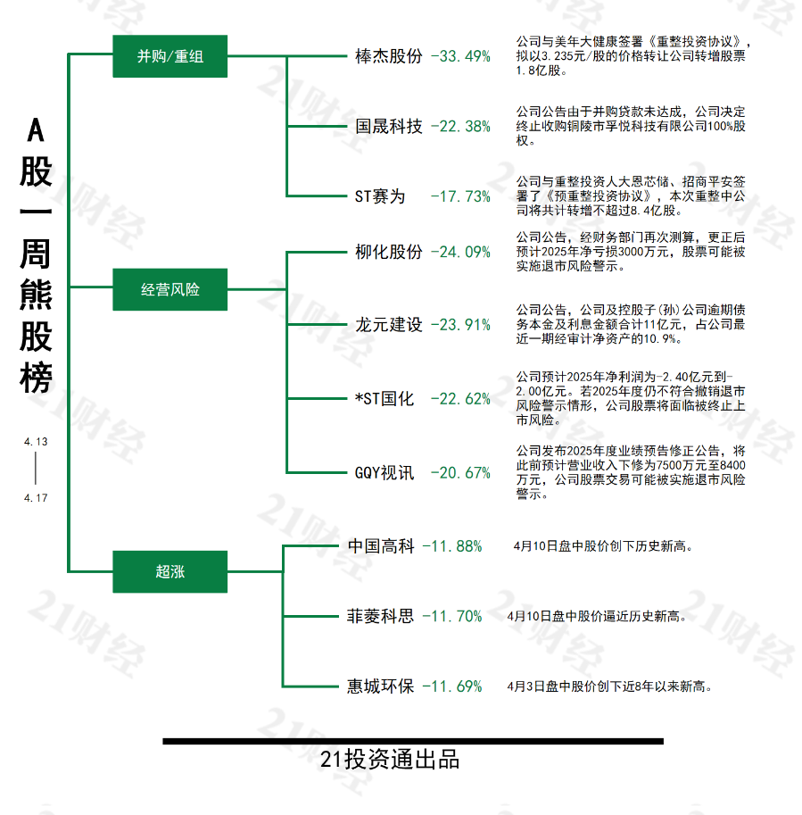 哪些个股领涨?哪些个股领跌?21投资通每周持续为你透视。
