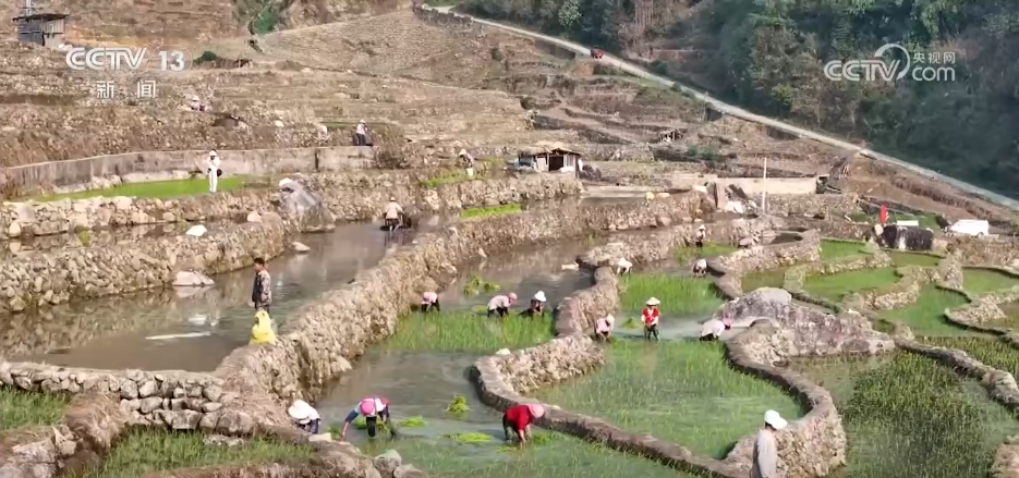 云南14个大型灌区、305个中型灌区已全部启动春灌,灌溉面积超522万亩。在红河,哈尼梯田低海拔地区的农户正抢抓晴好天气,在梯田间开展水稻移栽作业。