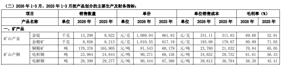 另一方面,黄金产品在2025年成为公司第一大利润来源后,今年公司矿产金继续保持量、价齐升,成为公司盈利增长的核心驱动力。