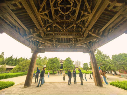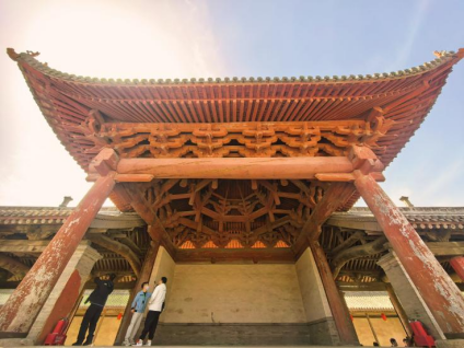 在临汾,采风团还参观了一座特别的戏台——襄汾县汾城古建筑群城隍庙戏台,和它毗邻的是游戏《黑神话:悟空》的取景地鉴察坊。这座戏台主体建构为明代所建,系 重檐歇山顶的过路式戏台,设计独 特,上为舞台,下为人行通道,全国重点文物保护单位。其观众区的地面是我国唯一保存较完整的地面铺设,是研究古代戏曲发展的珍贵实物。