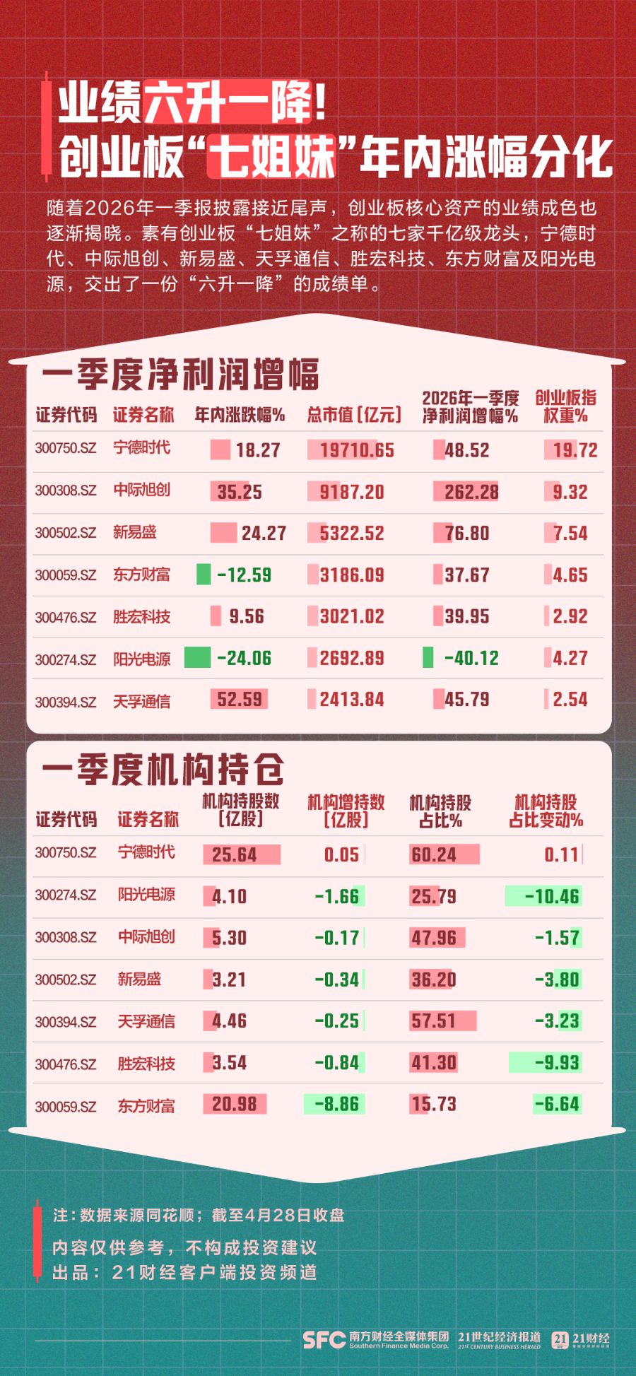 创业板 “七姐妹” 一季报扫描:业绩六升一降,机构持仓分化