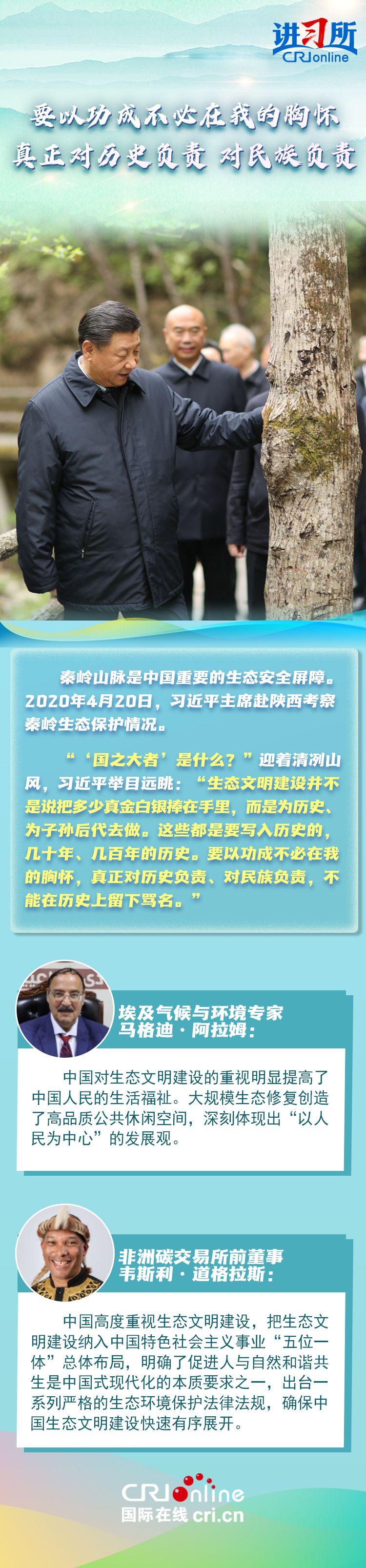 国际社会认为,中国对生态文明建设的重视明显提高了中国人民的生活福祉,其实践经验正为全球提供重要借鉴。