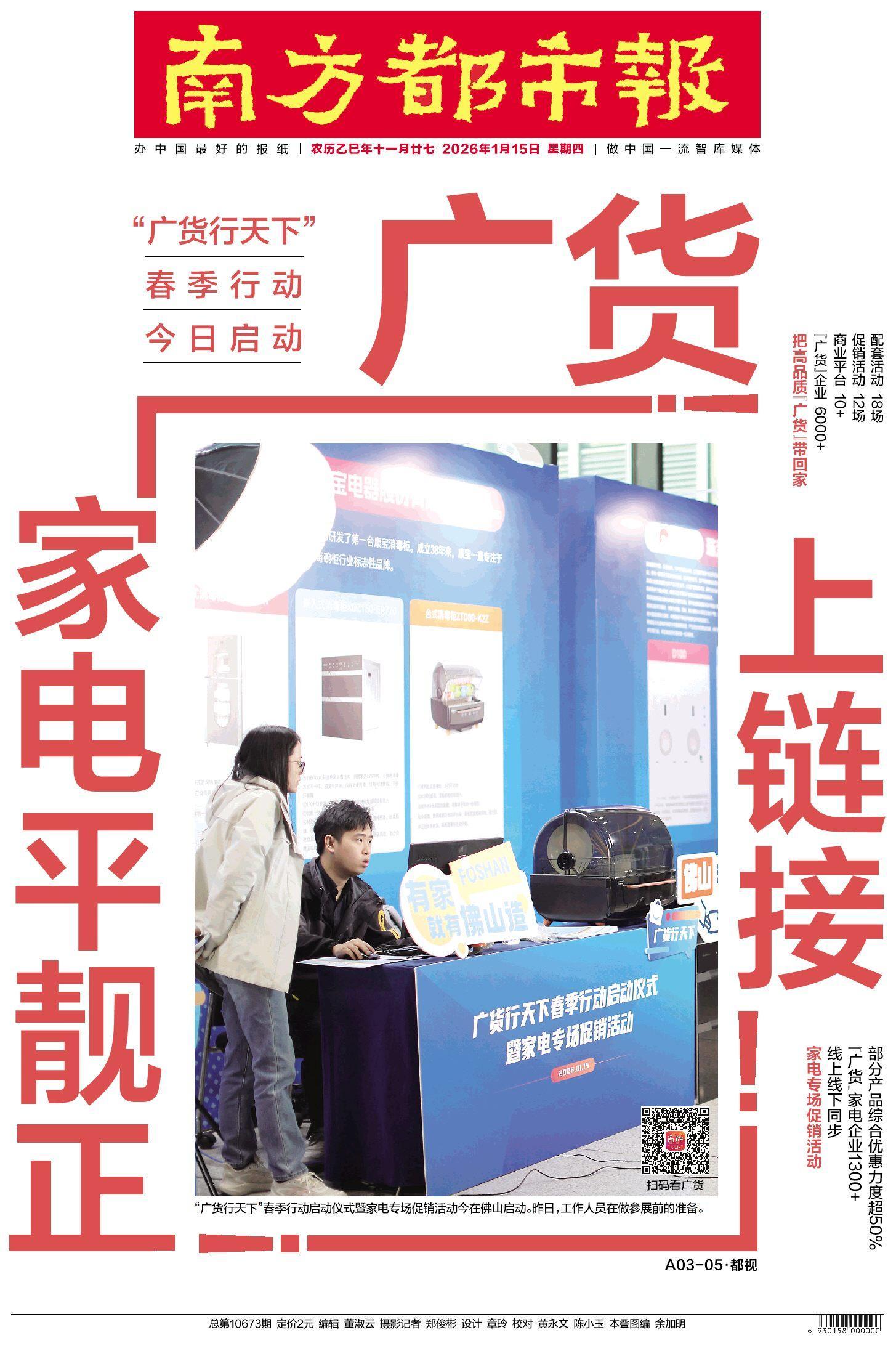 “我们的订单已经排到年后了!”春节前,在《老马小马的新途》专题报道中,我到佛山高明一个智能制衣车间采访,负责人曾骄傲地对我说出这句话。这两天,我又看到这家公司获评当地转型发展领航企业的消息。这是千千万万个广东企业的缩影。我想,这就是“广货行天下”从春季出发,迈向高光,将迎丰收的动力和底气。