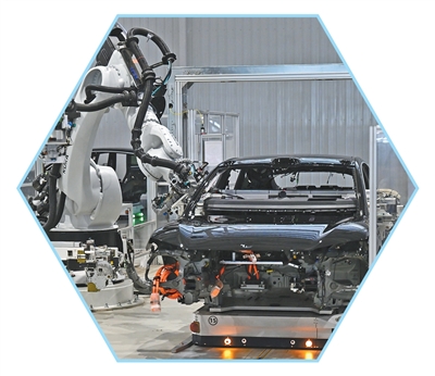 位于安徽合肥市新桥智能电动汽车产业园的蔚来第二工厂新能源汽车生产线。新华社记者 周 牧摄