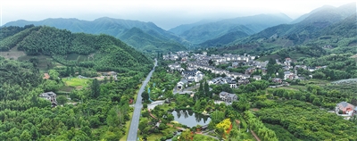 浙江杭州市余杭区径山镇乡村,青山绿水与村庄农房相映成趣。谢尚国摄(影像中国)